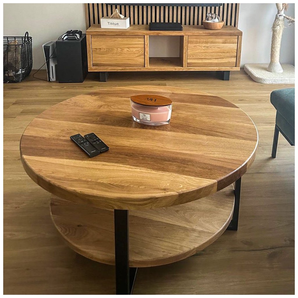 Ergänzen Sie Ihr Interieur mit einem eleganten Couchtisch aus der Werkstatt WOODIMA, der den rustikalen Charme massiver Eiche mit modernem industriellen Stahlstil vereint. Dieser Tisch wird zum stilvollen und praktischen Highlight Ihres Wohn- oder Arbeitszimmers.