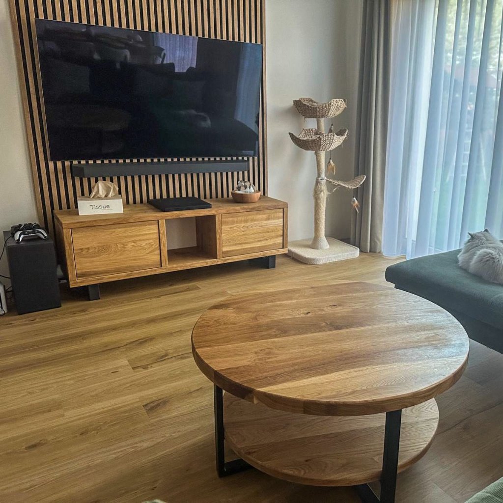 Der Couchtisch aus massiver Eiche ist nicht nur schön, sondern auch robust. Er ist leicht zu pflegen, und kleinere Gebrauchsspuren lassen sich einfach durch sanftes Schleifen und Ölen entfernen. So sieht Ihr Tisch auch nach Jahren wie neu aus.