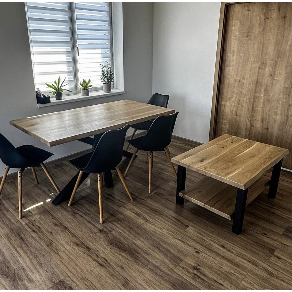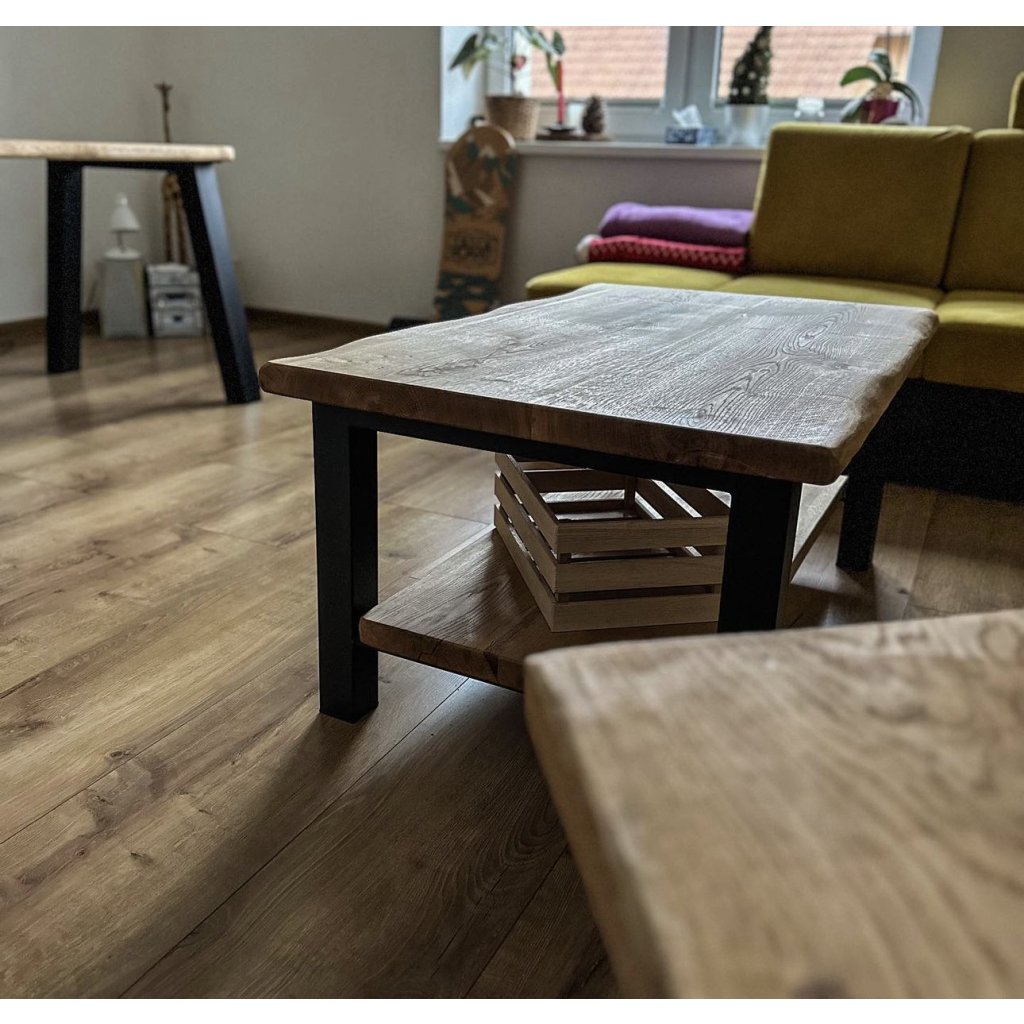 Ergänzen Sie Ihr Interieur mit einem eleganten Couchtisch aus der Werkstatt WOODIMA, der rustikalen Charme massiver Eiche mit modernem industriellem Stahlstil vereint. Dieser Tisch wird zum stilvollen und praktischen Highlight Ihres Wohnzimmers oder Arbeitszimmers.