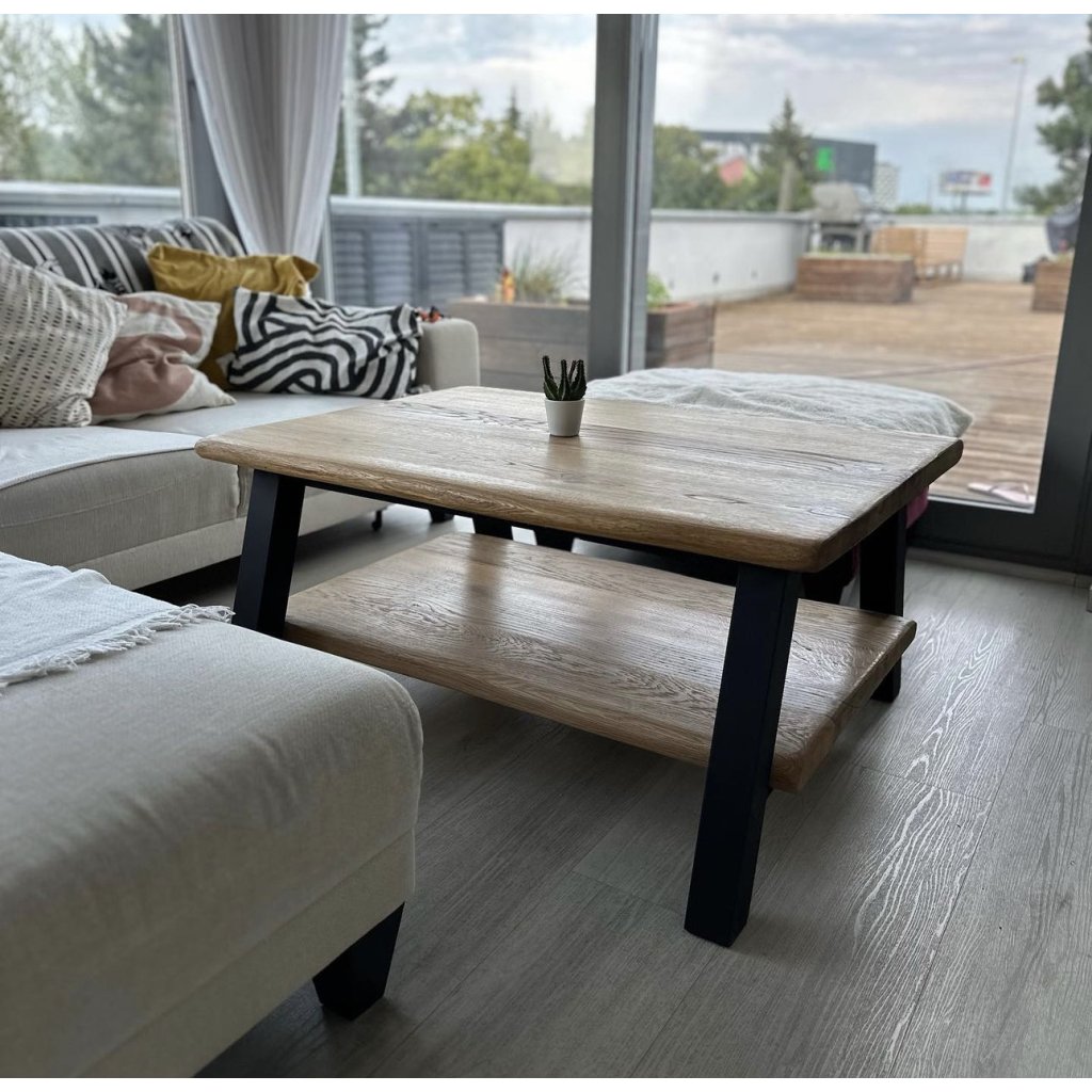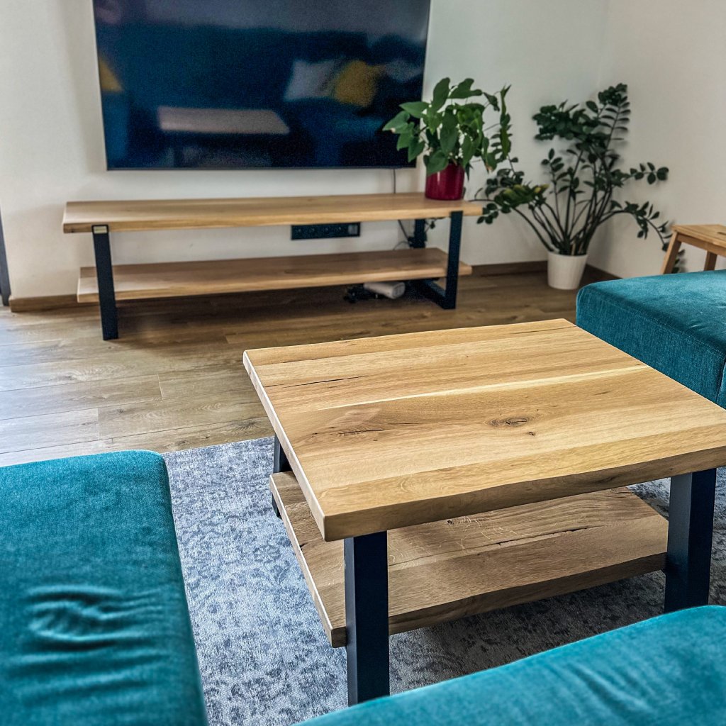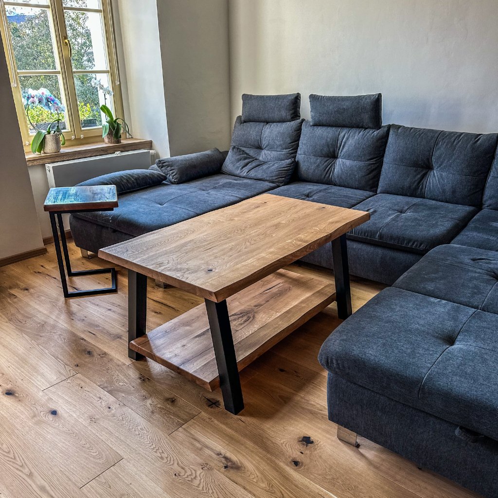 Ergänzen Sie Ihr Interieur mit einem eleganten Couchtisch aus der Werkstatt WOODIMA, der den rustikalen Charme massiver Eiche mit modernem industriellen Stahlstil verbindet. Dieser Tisch wird zu einem stilvollen und praktischen Highlight in Ihrem Wohnzimmer oder Arbeitszimmer.