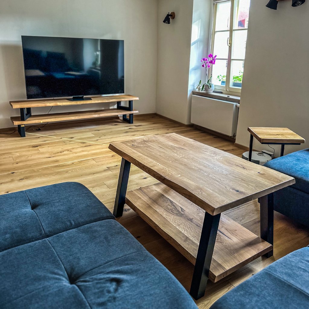 Der Couchtisch aus massiver Eiche ist nicht nur schön, sondern auch langlebig. Er lässt sich leicht pflegen, und kleine Gebrauchsspuren können durch leichtes Schleifen und Ölauftrag entfernt werden. So bleibt Ihr Tisch jahrelang wie neu.