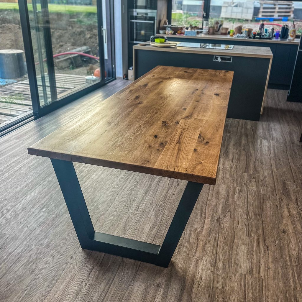 Egal ob Sie einen Tisch für Ihr Esszimmer oder Ihren Arbeitsbereich suchen – unser Tisch aus Eiche und Stahl ist bereit, zum Mittelpunkt Ihres Zuhauses zu werden. Besuchen Sie unsere Werkstatt, lassen Sie sich inspirieren und entdecken Sie auch unsere weiteren Produkte.