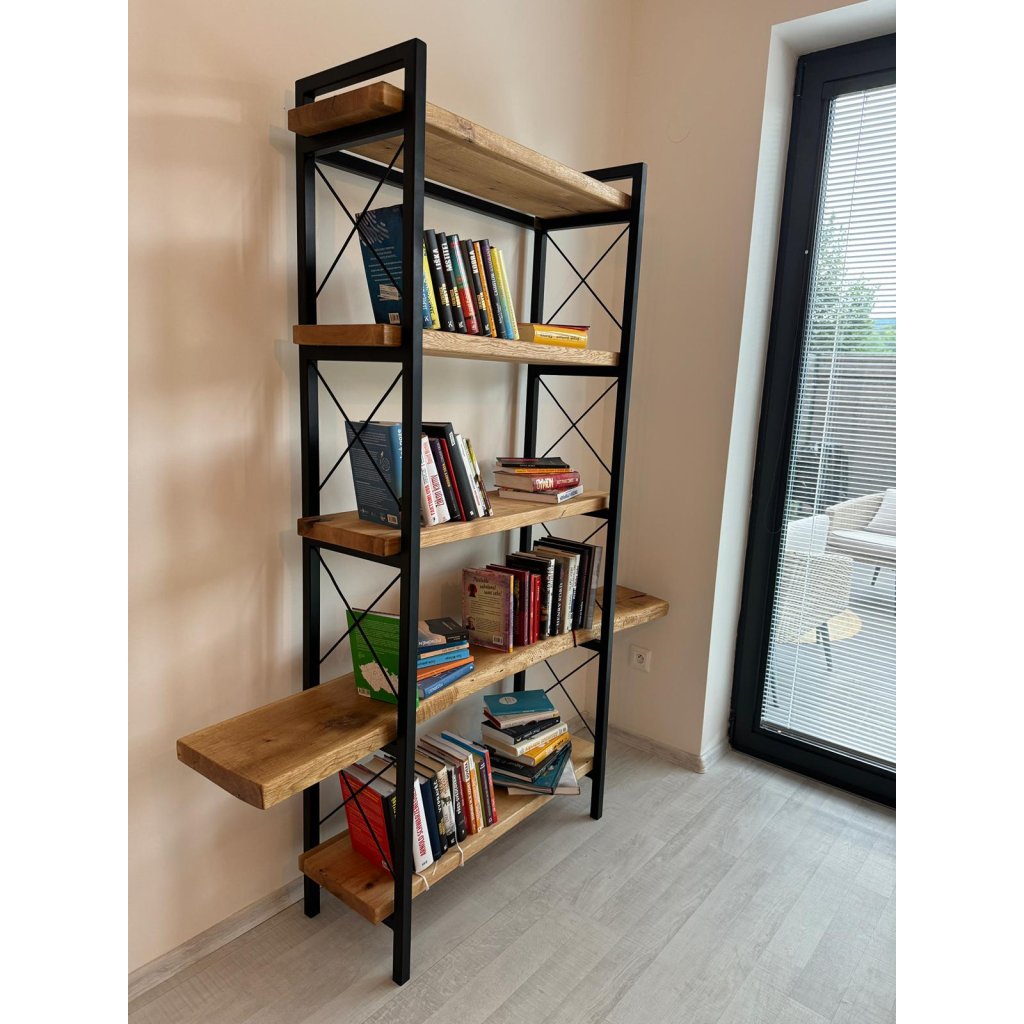 Regal aus Eiche und Stahl