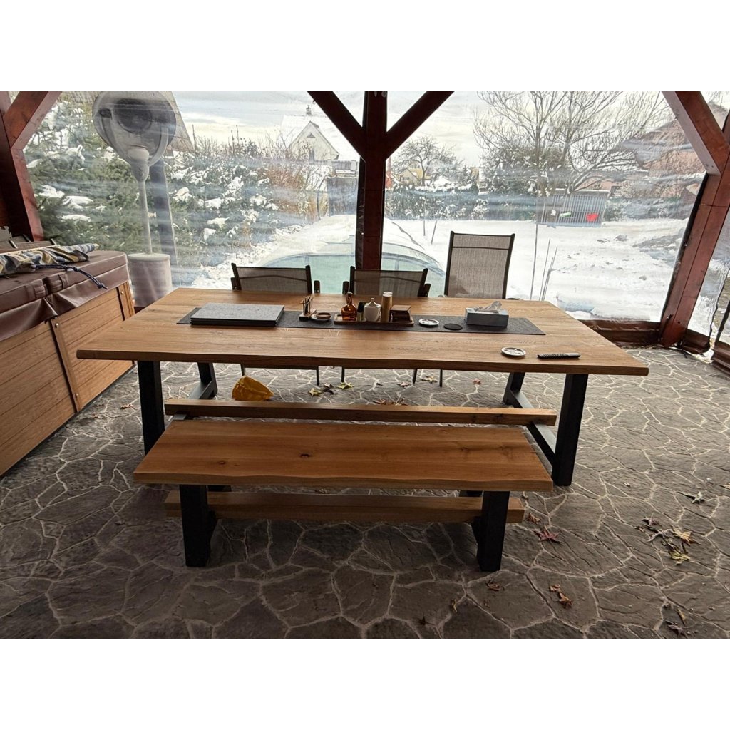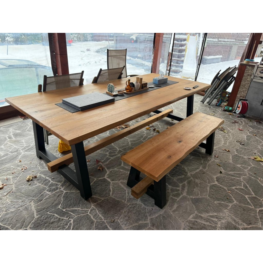 Die massive Eichenplatte bringt authentische natürliche Schönheit mit Unregelmäßigkeiten wie Rissen und Astlöchern. Diese Stellen sind mit schwarzem Epoxidharz oder Spachtel gefüllt, was der Platte einen charakteristischen Look verleiht. Wenn Sie eine Platte ohne Astlöcher bevorzugen, geben Sie dies bitte bei der Bestellung an.