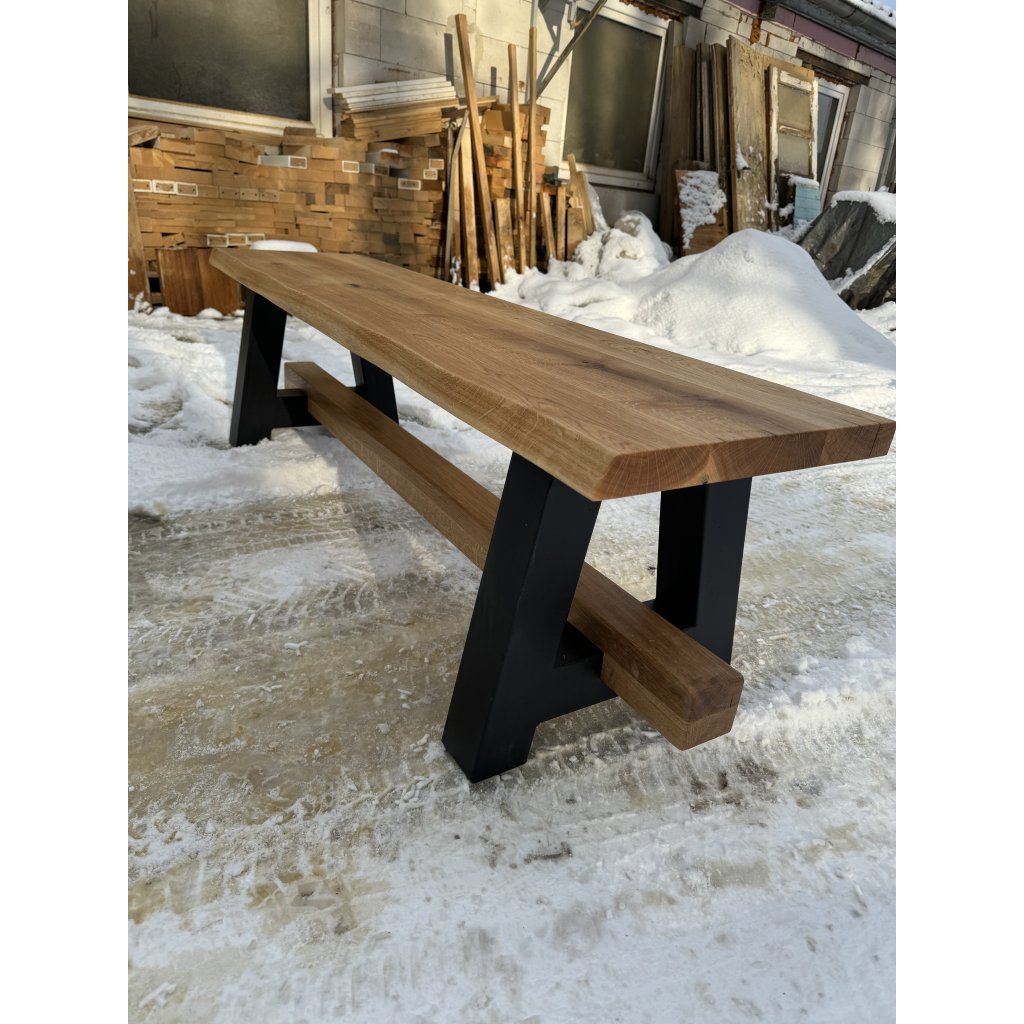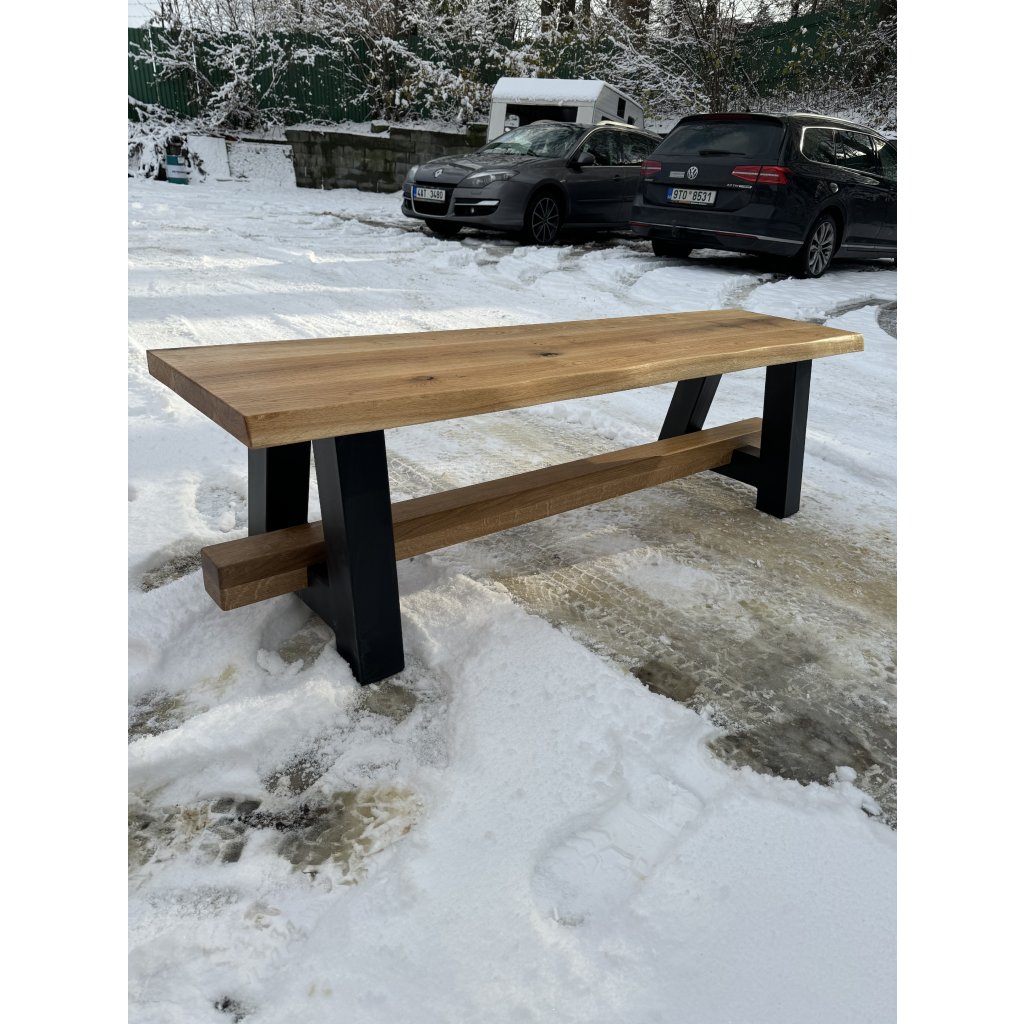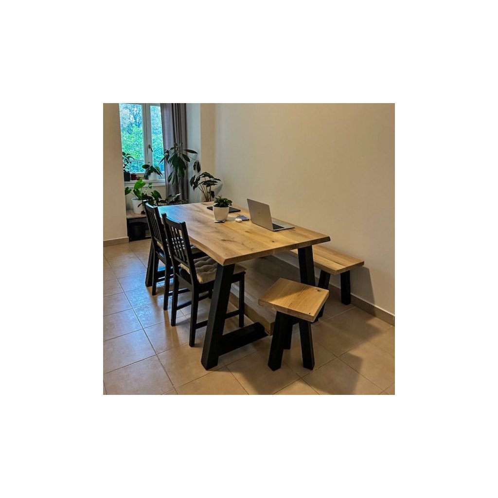 Sitzbank mit Holzbeinen, passend zu allen unseren Tischmodellen. Die Sitzfläche ist 40 cm breit (tief) für komfortables Sitzen.