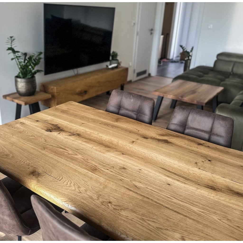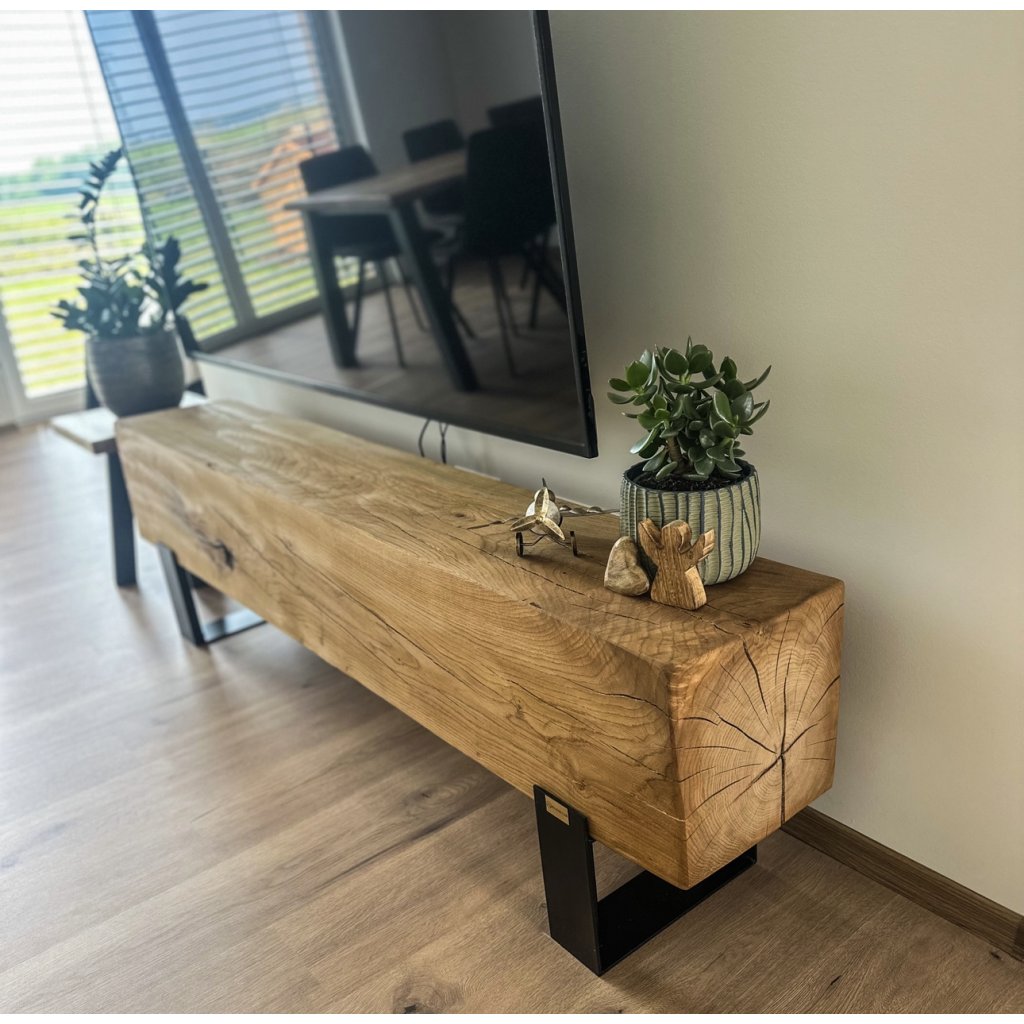 Verleihen Sie Ihrem Wohnbereich einen modernen und zugleich zeitlosen Stil mit unserer TV‑Bank aus massiver Eiche und Stahl. Dieses Möbelstück sieht nicht nur hervorragend aus, sondern bietet auch genügend Platz für Ihre Elektronik und Accessoires – perfekt für alle, die auf hochwertige und stylishe Einrichtung Wert legen.
